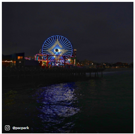 Pacific Park is an oceanfront amusement park located in Santa Monica, California. The Park, located on the Santa Monica Pier, looks directly over the Pacific Ocean, has 12 family-friendly rides, exciting midway games and an over-the-ocean food court. The Park is open 365 days a year. Operating hours may vary due to special events or weather. Please visit www.pacpark.com/hours to confirm operating schedule before visiting.