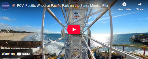 More recently, a 2019 episode of the FOX television drama 9-1-1 depicts the Pacific Wheel sticking out of the ocean after a tsunami sends the entire 110-year-old wooden Santa Monica Pier toppling into the sea. Though the scene was shot in Mexico, the set faithfully recreated Pacific Park and its 85-foot-tall Ferris wheel, right down to the color of the gondolas.